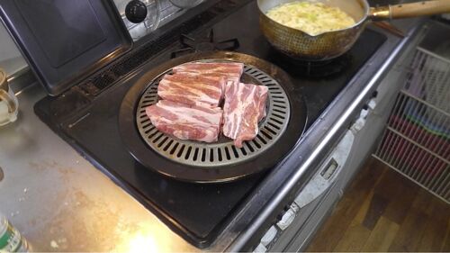 【 2020/4/17の食事 】 サムギョプサルと言う肉料理の動画を見た。真似してみた。油を落としながら弱火でじっくりと焼くのであった。塩コショウで焼いて、ポン酢で食べた。猛烈に美味しかった。売上が上がったらプレート買おう(笑)。汁はキャベツにしゃぶ…